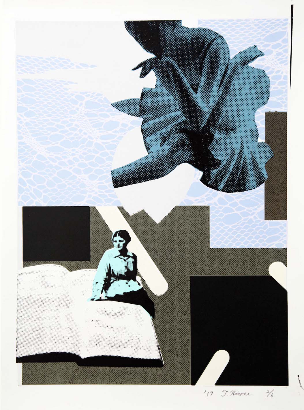 Hirose zu diesem Werk: "Bei der Arbeit dachte ich zunächst an ein Bild von zwei Frauen, die auf einem Buch sitzen. Dann hatte ich die Idee, die Quelle der Weisheit/des Wissens mit einer echten Quelle zu kombinieren."