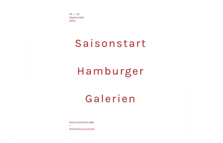 Samstag, 12. September 11 - 13:30 Uhr Führung durch die Galerien in der Admiralitätstraße 14:30 - 17 Uhr Führung durch die Galerien im Kontorhausviertel Teilnahmegebühr je Führung, pro Person: 10 Euro Anmeldung unter: admi@evelyndrewes.de kontorhaus@evelyndrewes.de Verlängerte Öffnungszeiten am Gallery Weekend im Kontorhausviertel