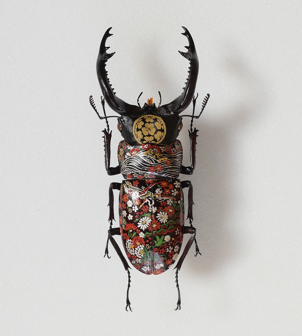 Akihiro Higuchi, Mitate-Urushi (K1318), 2018, Insektenpräparat, Urushi, Gold, Silber, H 20 x 18 cm (Rahmen).